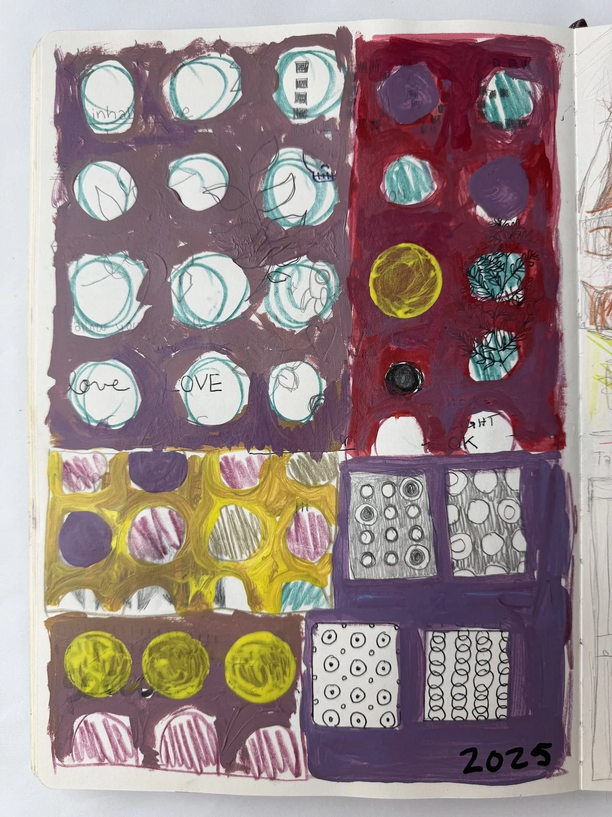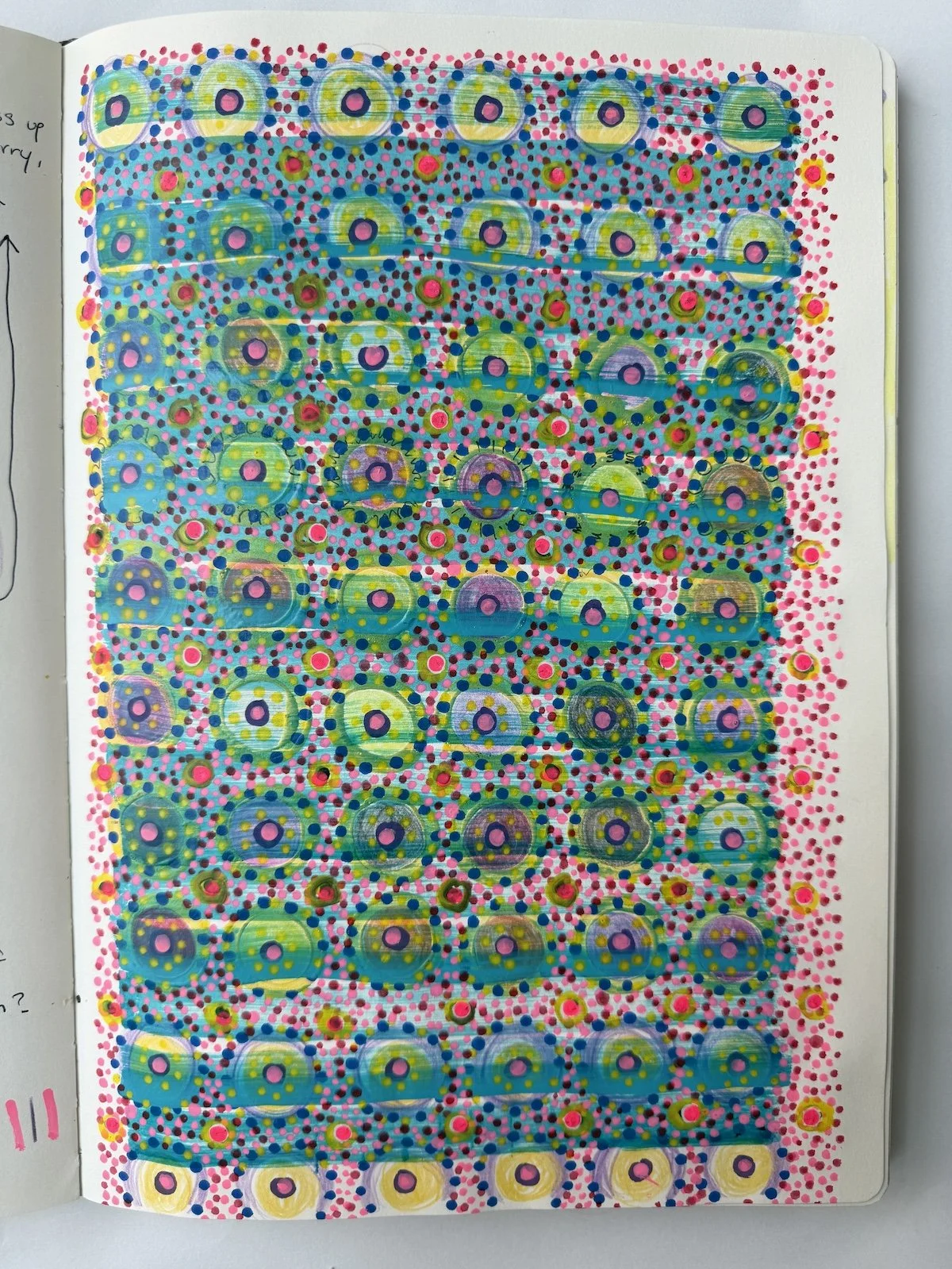A big thing I learned is that a sketchbook has to be convenient. Towards the end, I felt myself struggling to reach for it, but I saw those final pages and decided to just spend time with them in places I knew I’d be. For me, that meant leaving it open on the kitchen table so I could draw while I ate breakfast, and having it near me while I painted in the studio. I thought about it less like “Sketchbook time” and more like “Breakfast time.. with a sketchbook”. The distinction mattered to me.