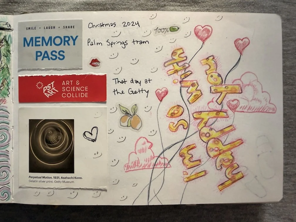 The beginning was explosive. We captured everything. We kept scores of the games we played together, made collages with wrappers from our favorite candy, drew scenes from movies we loved and hated, pasted in concert tickets and plane tickets, filled pages with stickers we collected along our adventures, and much more.