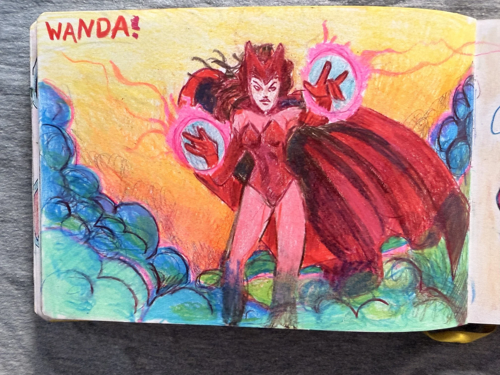 I also found it interesting how we negotiated time with the sketchbook. Sometimes one of us would say, "Hey, I've had the sketchbook for a while, you should keep it for a bit." That meant the person handing it over would soon have new sweet, loving, silly, stupid drawings waiting to be discovered. I love making that unspoken promise to each other.